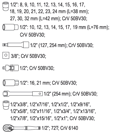 Bộ tay vặn tổng hợp 1/2" là một trong những công cụ không thể thiếu trong bộ trang thiết bị dụng cụ sửa chữa tại nhà máy, công ty hoặc xưởng cơ khí, sửa chữa tại gia đình, v.v… với chức năng chính là giữ và xoay các đai ốc, bu lông.